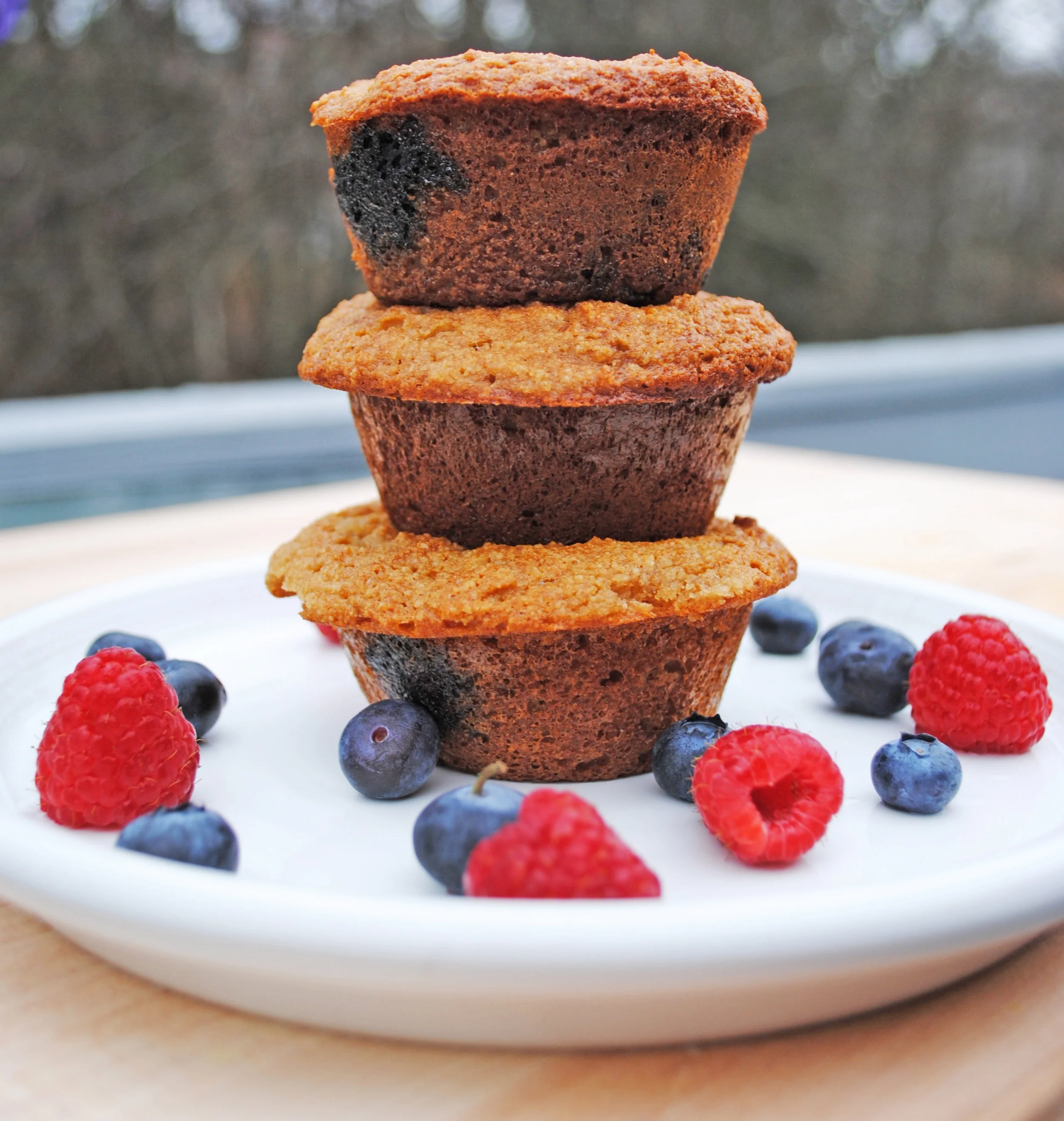Ahh, glorious muffins. A piping hot muffin smothered with ghee is my idea of a comforting breakfast. As a kid, my mom always made the Mixed Berry Martha White muffins- you know the ones, they come in a fun bag and had the tastiest sugary fake blueberry bits. I submit to you the gluten free, dairy free, refined sugar free answer to those nostalgic muffins.