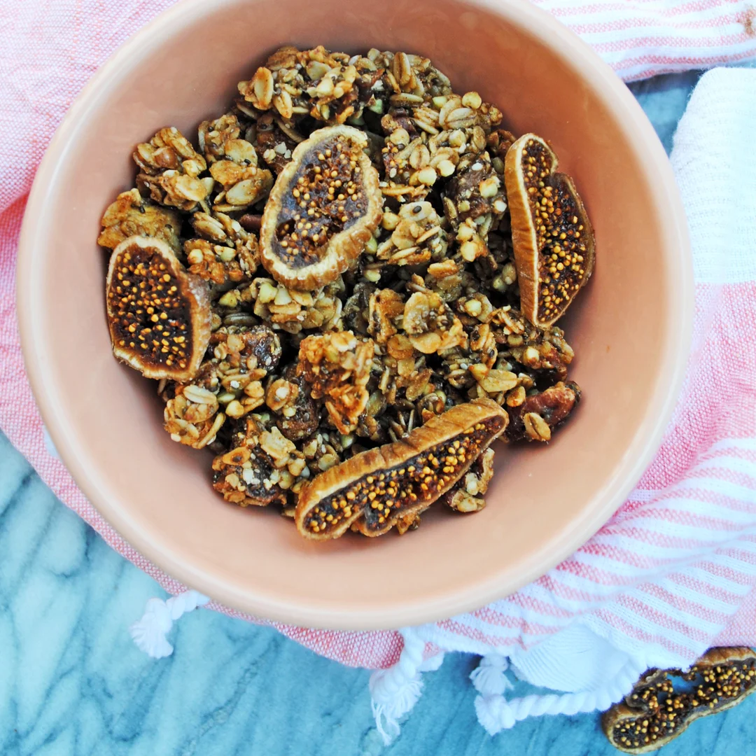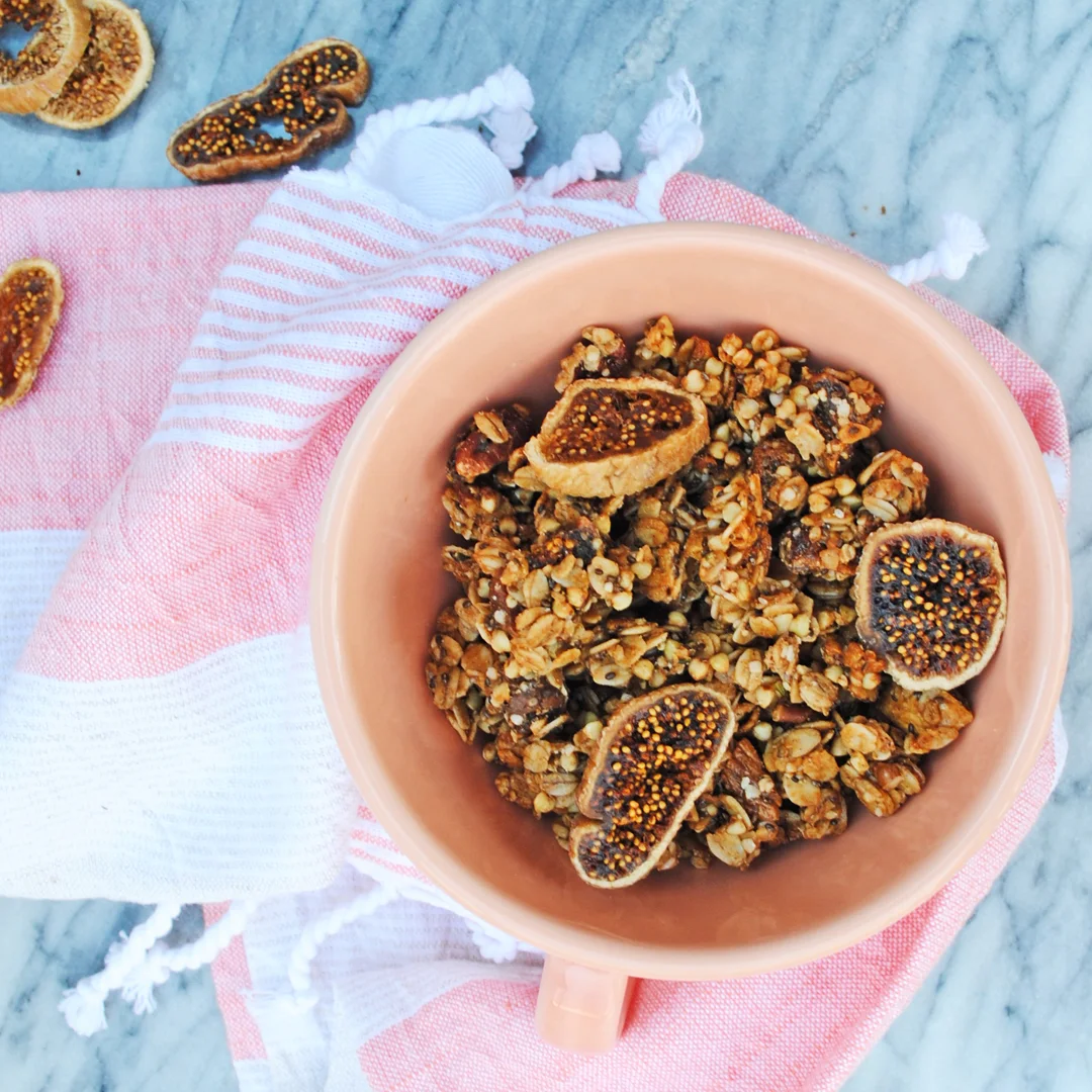 I love granola! I think I could sustain off the millions of different varieties for my entire life if it were necessary. This fun version is crunchy and loaded to the max with dried figs! You can pretty much add dried figs to anything and (to me at least) it turns into a classic ole Fig Newton. Growing up, if I felt like being healthy I'd bypass the beloved Double Stuffed Oreo and choose the Fig Newton, it was made of fruit after all! 😂😂😂 Those days are gone but the figs we know and love are still around!