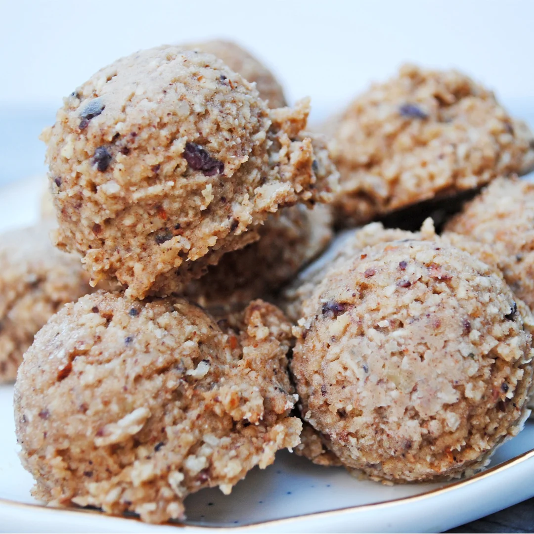These balls are low in sugar (especially if you omit the dates) and high in both protein and fat. I love to just snack on one during a midday slump on days when I've kicked up my cardio routine. For the longest time, I've called these balls Coconut Fat Bombs but then realized they are actually balls...so I'll stick with their official title!